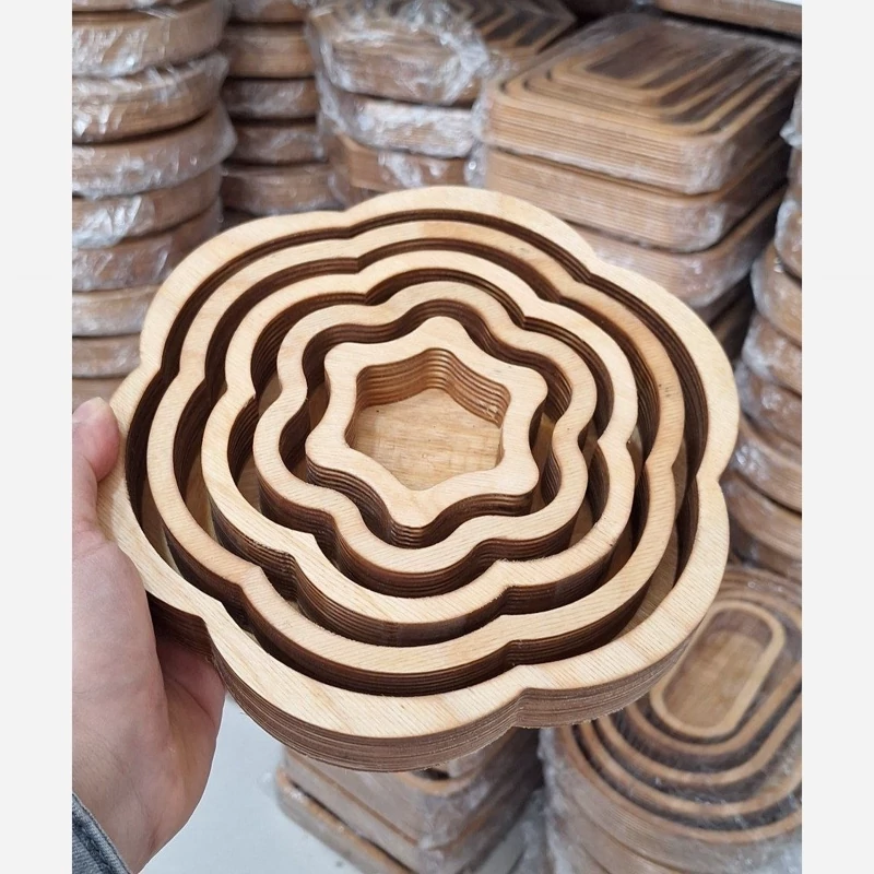 سینی 5 تیکه ⏬ قطر 30 میل قابل شست وشو بدون پایه در طرح های گل دایره و مربع 5 تا باهم