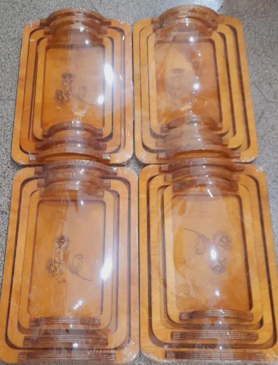 سینی های چوبی جنس چوب پلی وود روس کیفیت بالا کف سینی گل رز لیزر شده اندازه سایز بزرگ 37*27 قیمت:سه تیکه باهم 850